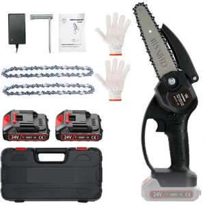 CHOSMO Review, Mini Fierastrau Cu Lant Electric Portabil, Lama de 20 cm, 24V, 1500mAh, 2 Baterii, 2 Lanturi, Negru